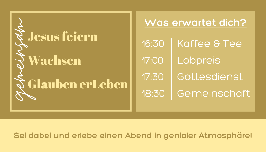Einmal wöchentlich stellen wir die wichtigen Infos für die Gottesdienste in der kommenden Woche und der nächsten Zeit in einem kompakten Blogbeitrag zur Verfügung.