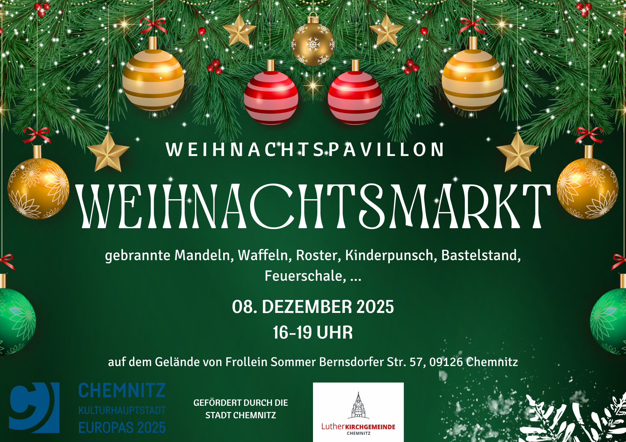 Sonntag, 07.12.2025, 09:30 Uhr, Gottesdienst mit Abendmahl. Es predigt Pfr. Jens Oehme. Die Schatzinsel, das Spatzennest und V.I.T. finden statt.
