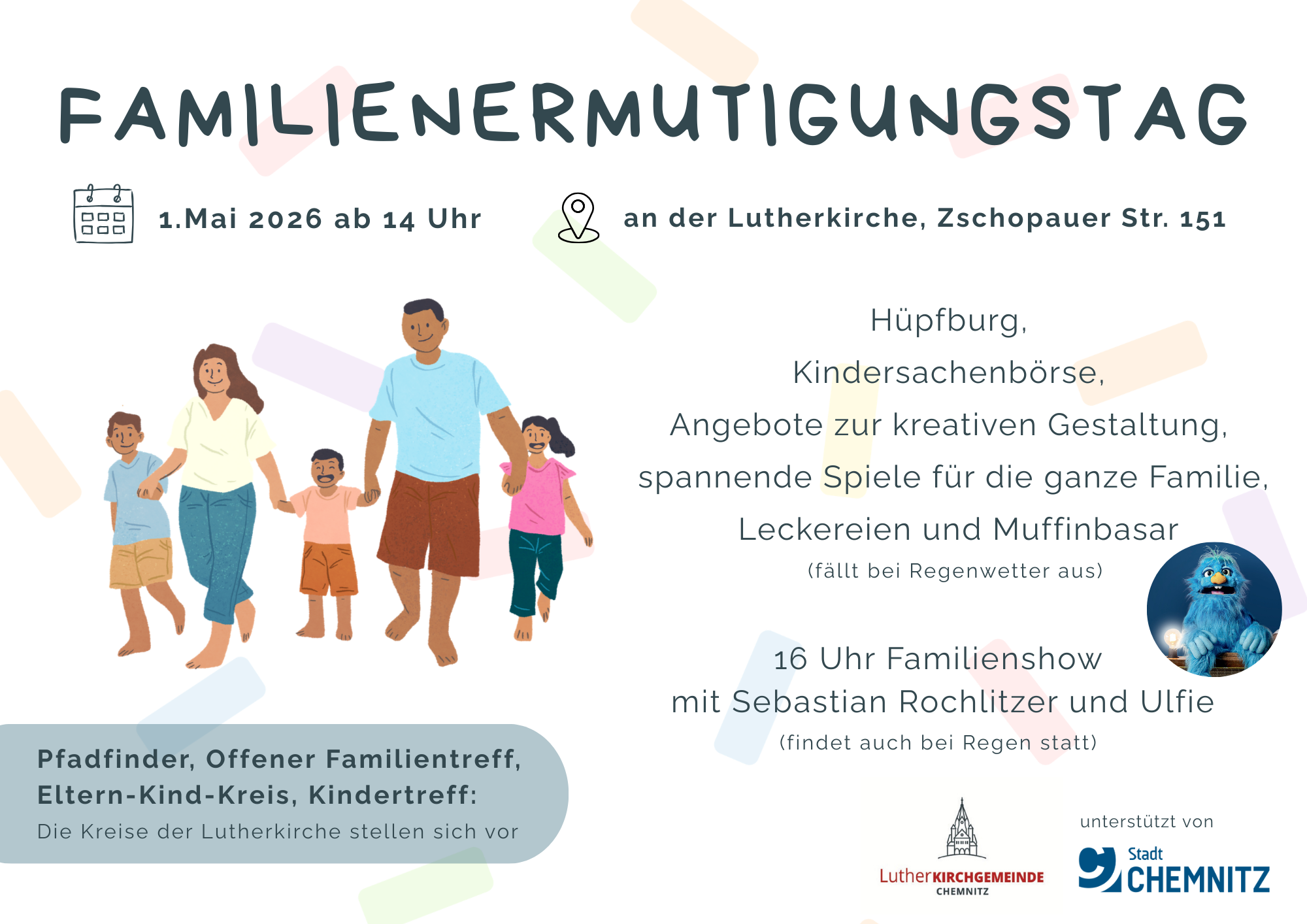 - Freitag, 01.05.2026, Familienermutigungstag mit Familienkonzert-Show mit Sebastian Rochlitzer und Ulfie (Flyer im Anhang)