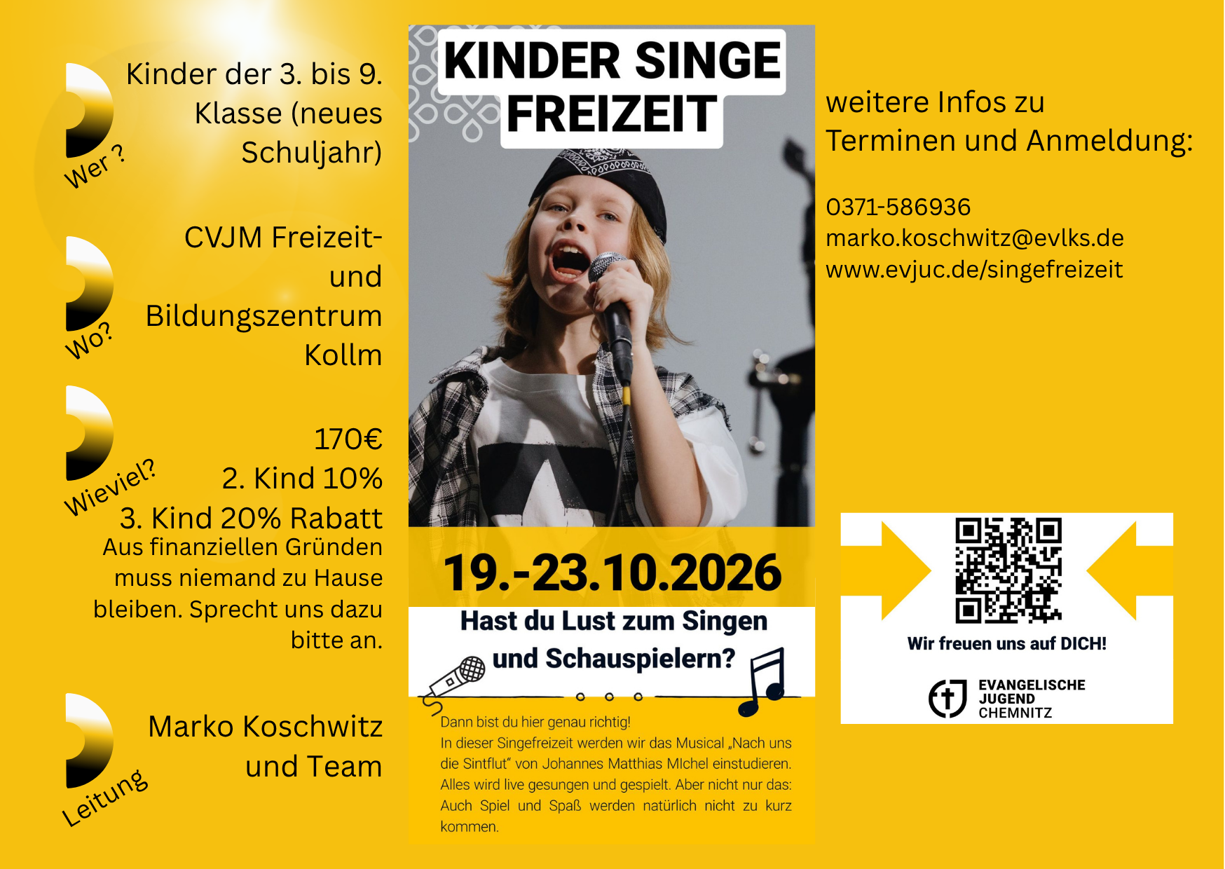 19. - 23.10.2026, Kinder-Singe-Freizeit, Anmeldungen sind an jetzt möglich. (Flyer im Anhang)